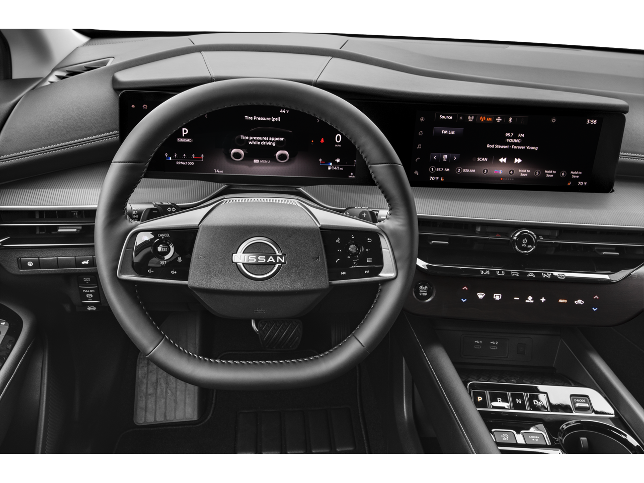 - Radio: NissanConnect -inc: 6 speakers (2 A-pillar, 2 front door, 2 rear door), 12.3" color touch-screen display, wireless Apple CarPlay, wireless Android Auto, 2 front and 2 rear USB type-C charge and data, SiriusXM w/360L, NissanConnect services powered by SiriusXM and 5G cellular connection