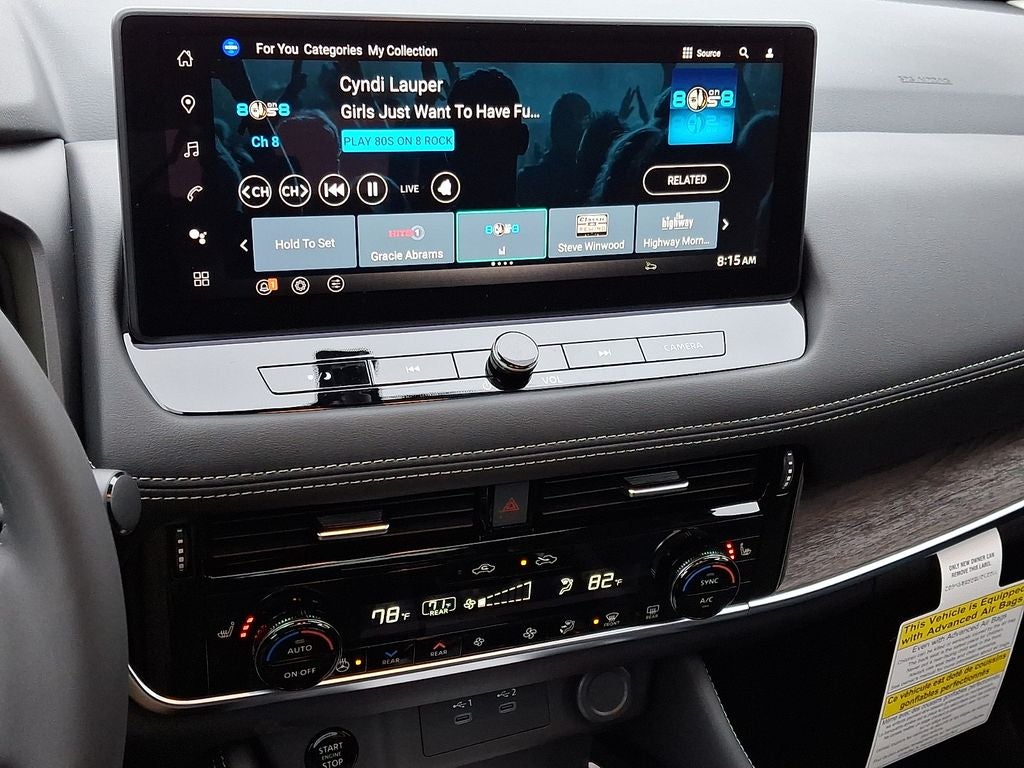 - Radio: AM/FM NissanConnect w/Navigation -inc: SiriusXM 360L, hybrid radio, enhanced voice recognition (one shot VDE, natural language understanding), Active Noise Cancellation, wireless Apple CarPlay, wireless Android Auto, 12.3" color HD display, Bluetooth®, 2 front USB type-C, Wi-Fi hotspot, Alexa Built-In, Google built-in: Google Assistant, Play Store, maps, data, NissanConnect Services powered by SiriusXM, SiriusXM Traffic and SiriusXM Travel Link