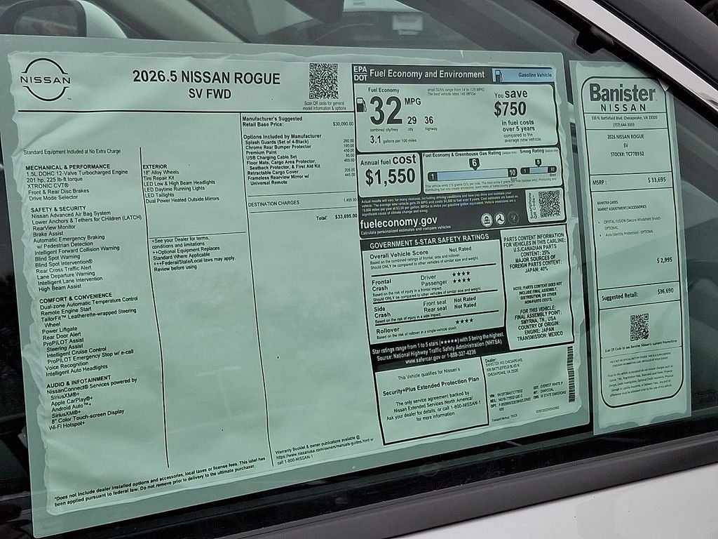 Discover exceptional value with this 2026 Nissan Rogue SV, located in Chesapeake, VA. This fuel-efficient crossover features a responsive 3-cylinder, 1.5L gasoline engine and front-wheel drive for confident handling around town and on the highway. With competitive pricing, this Nissan Rogue SV offers the best price in the area — affordably priced without sacrificing comfort or technology. Step inside to find a modern, driver-focused interior equipped with convenient tech: seamless Apple CarPlay and Android Auto integration keep navigation and media at your fingertips, while Hands Free Bluetooth® ensures safe, easy calling on the go. Cold mornings are no match for Remote Start, and the Back-Up Camera adds visibility and peace of mind when parking. This Nissan Rogue SV balances efficiency and practicality with smart design and user-friendly features. Whether commuting in Chesapeake, exploring nearby Virginia Beach, or running errands across Hampton Roads, this vehicle delivers a smooth ride and low ownership costs. Safety and convenience features support daily driving, and the cabin offers comfortable seating and intuitive controls for a relaxed experience. Don't miss this opportunity to own a 2026 Nissan Rogue SV with modern connectivity and smart features at the best price in Chesapeake, VA. Schedule a test drive today and experience this value-packed crossover for yourself.