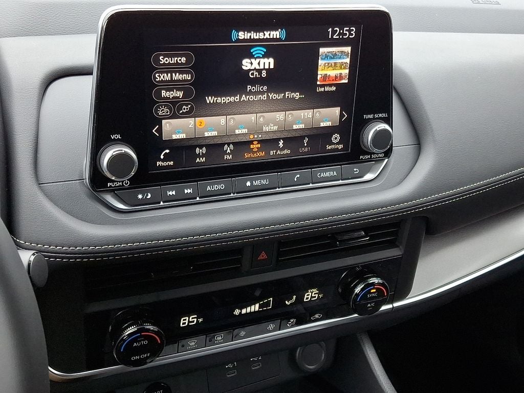 - Radio: AM/FM NissanConnect -inc: 6 speakers plus 2 tweeters, Apple CarPlay, Android Auto, 8" color touch screen display, Bluetooth®, 2 front USB type-C, Wi-Fi hotspot and NissanConnect Services powered by SiriusXM