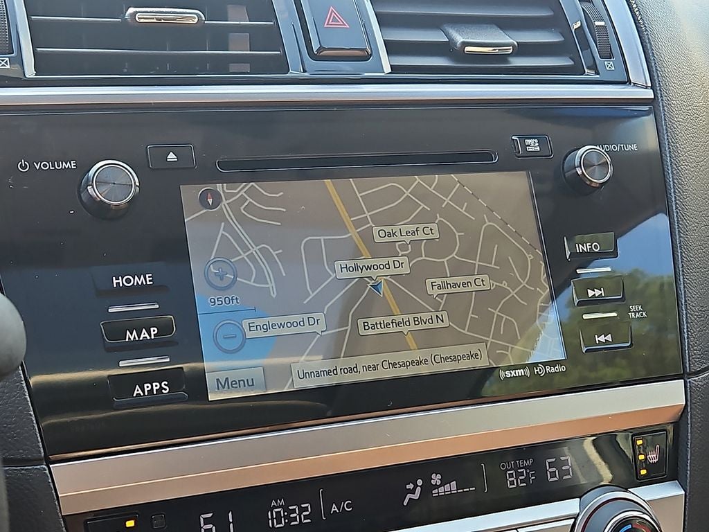 Ready for any road, this 2017 Subaru Outback Touring AWD pairs rugged capability with refined comfort — now available in Chesapeake, VA at the best price. Powered by a fuel-efficient 4‑cylinder 2.5L gasoline engine and Subaru's legendary all‑wheel drive, this Subaru Outback delivers confident handling in rain, snow, or highway cruising while keeping operating costs low. Inside, premium Touring features surround you: an intuitive Navigation system guides every trip, a Back‑Up Camera helps with parking and tight spots, and Lane Keep Assist adds an extra layer of safety on long drives. Stay connected and hands‑free with Bluetooth® phone and audio integration, making calls and streaming music effortless and safe. This vehicle also comes with a CARFAX Clean Report for added peace of mind — a documented history that supports a smart purchase. Comfort and convenience meet durability with spacious cargo area, upscale interior materials, and thoughtful tech that enhances daily driving. Whether you're commuting through Chesapeake, planning weekend escapes to the coast, or tackling winter routes, this Subaru Outback Touring is equipped to perform. With a strong service history and the best price in the area, this Subaru represents exceptional value for buyers seeking reliability, safety, and versatility. Schedule a test drive today in Chesapeake, VA and experience why the 2017 Subaru Outback Touring remains a top choice for drivers who demand capability without compromise.