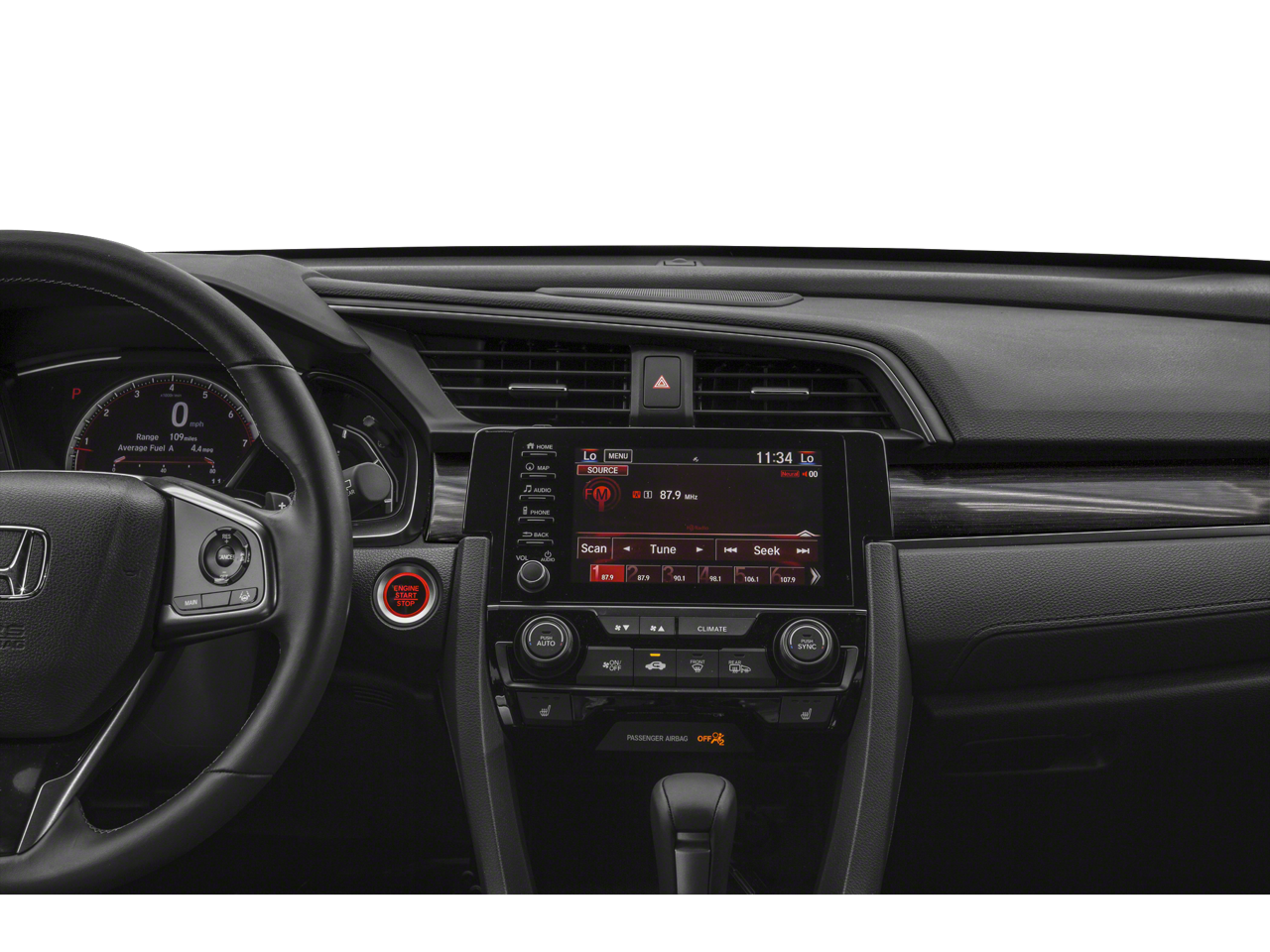 Protect this small car from unwanted accidents with a cutting edge backup camera system. This small car offers Automatic Climate Control for personalized comfort. You'll never again be lost in a crowded city or a country region with the navigation system on this vehicle. The vehicle has auto-adjust speed for safe following. Never get into a cold vehicle again with the remote start feature on this Honda Civic. The Honda Civic comes equipped with Android Auto for seamless smartphone integration on the road. Apple CarPlay: Seamless smartphone integration for this unit - stay connected and entertained on the go! The leather seats in this model are a must for buyers looking for comfort, durability, and style. This small car features a hands-free Bluetooth® phone system. The vehicle has a 4 Cyl, 1.5L high output engine. The vehicle has an elegant black exterior finish. Maintaining a stable interior temperature in this 2020 Honda Civic is easy with the climate control system.