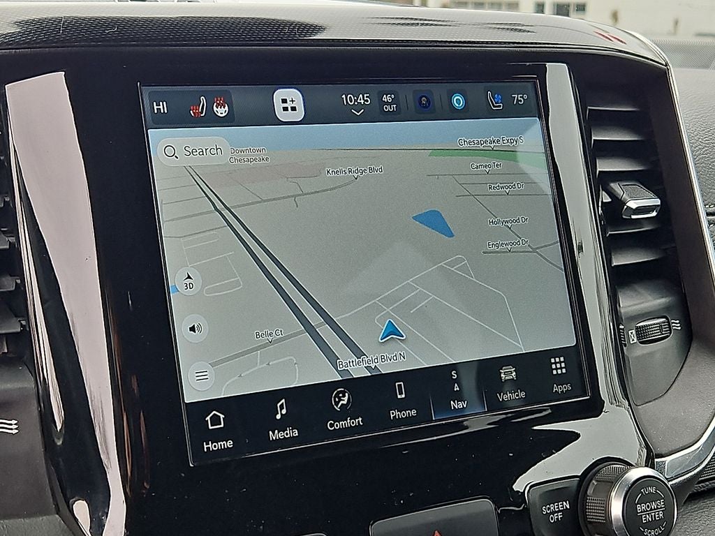 2022 Ram 1500 Laramie 4WD — V8 5.7L Gasoline, located in Chesapeake, VA. This premium pickup blends legendary capability with refined comfort, featuring a powerful 5.7L V8 and reliable four-wheel drive for confident towing and off-road performance. Thoughtfully appointed leather seats provide long-haul comfort, while automatic climate control keeps the cabin pleasant in any weather. This Ram 1500 Laramie offers modern safety and convenience with Forward Collision Warning and remote start for easy engine activation on chilly mornings. The vehicle's CARFAX 1-Owner history adds peace of mind and demonstrates careful ownership. Built to handle heavy-duty tasks and daily driving alike, the robust V8 delivers strong acceleration and dependable highway cruising. Inside, upscale materials and intuitive controls create a driver-focused environment, complemented by available technology and storage solutions that make every trip more organized. Exterior styling combines rugged presence with refined details, reflecting the Laramie's premium positioning in the Ram lineup. Located in Chesapeake, VA, this 2022 Ram 1500 Laramie is competitively priced and advertised as the best price, offering exceptional value for buyers seeking performance, comfort, and confidence. Schedule a test drive today to experience the powerful V8, smart safety features, and high-quality interior firsthand. Financing options and trade-in evaluations are available to streamline your purchase.