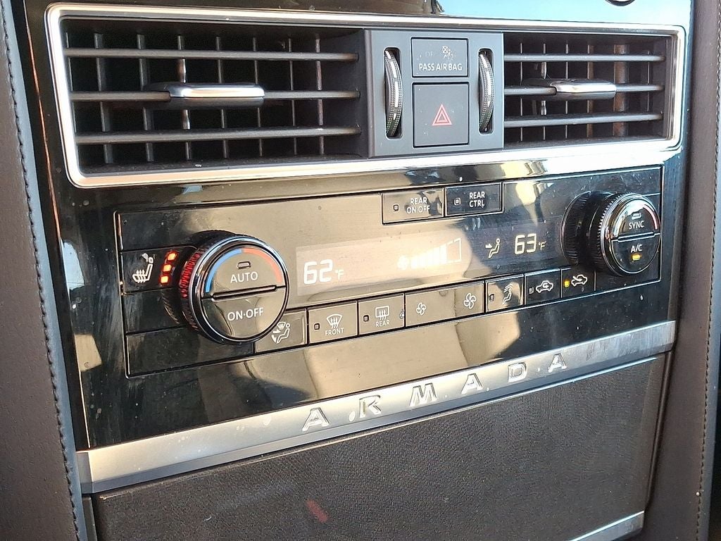 with XM/Sirus Satellite Radio you are no longer restricted by poor quality local radio stations while driving the vehicle. Anywhere on the planet, you will have hundreds of digital stations to choose from. Never get into a cold vehicle again with the remote start feature on this 2023 Nissan Armada . It offers Apple CarPlay for seamless connectivity. Bluetooth® technology is built into this 2023 Nissan Armada , keeping your hands on the steering wheel and your focus on the road. The state of the art park assist system will guide you easily into any spot. This vehicle offers Android Auto for seamless smartphone integration. See what's behind you with the back up camera on this unit. This Nissan Armada has a clean CARFAX vehicle history report. You'll never again be lost in a crowded city or a country region with the navigation system on the Nissan Armada. The leather seats in this unit are a must for buyers looking for comfort, durability, and style.