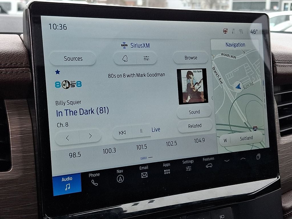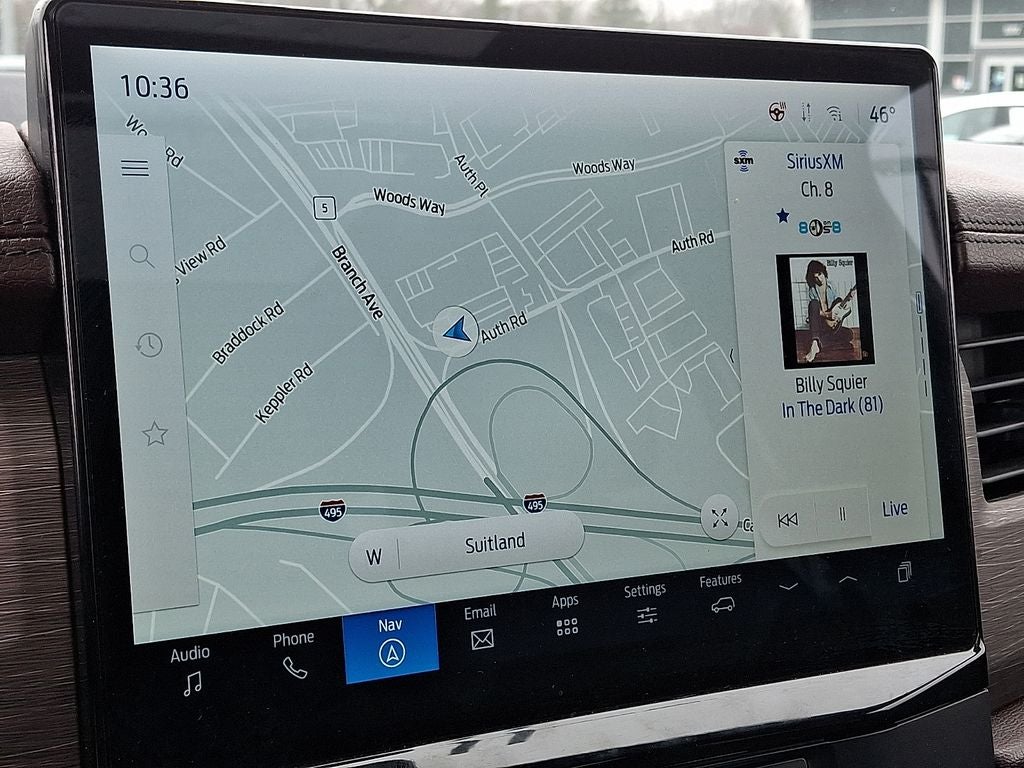 Equipment Group 302A High Package: Heated and Ventilated Leather Front Captain's Chairs; 22" 12-Spoke Polished Aluminum Wheels; 7. 450 lbs GVWR; B&O Sound System by Bang and Olufsen; Ebony Black Mesh Grille; Power-Folding Sideview Mirrors with Autofold; Magnetic-Painted Power Deployable Running Boards; 10-Speed Automatic Transmission with SelectShift; Panoramic Vista Roof; 3.5L EcoBoost V6 Engine; Heavy-Duty Independent Suspension; P285/45R22 110H AS BSW Tires; 3.31 Axle Ratio. Ford Co-Pilot360 Assist 2.0: Connected Navigation; Reverse Brake Assist; 360-Degree Camera with Split View. Panoramic Vista Roof. 2nd Row Power-Folding 40/20/40 Leather Bench Seat. Mahogany. Advanced Cargo Manager. **Equipment listed is based on original vehicle build and subject to change. Please confirm the accuracy of the included equipment by calling the dealer prior to purchase.**