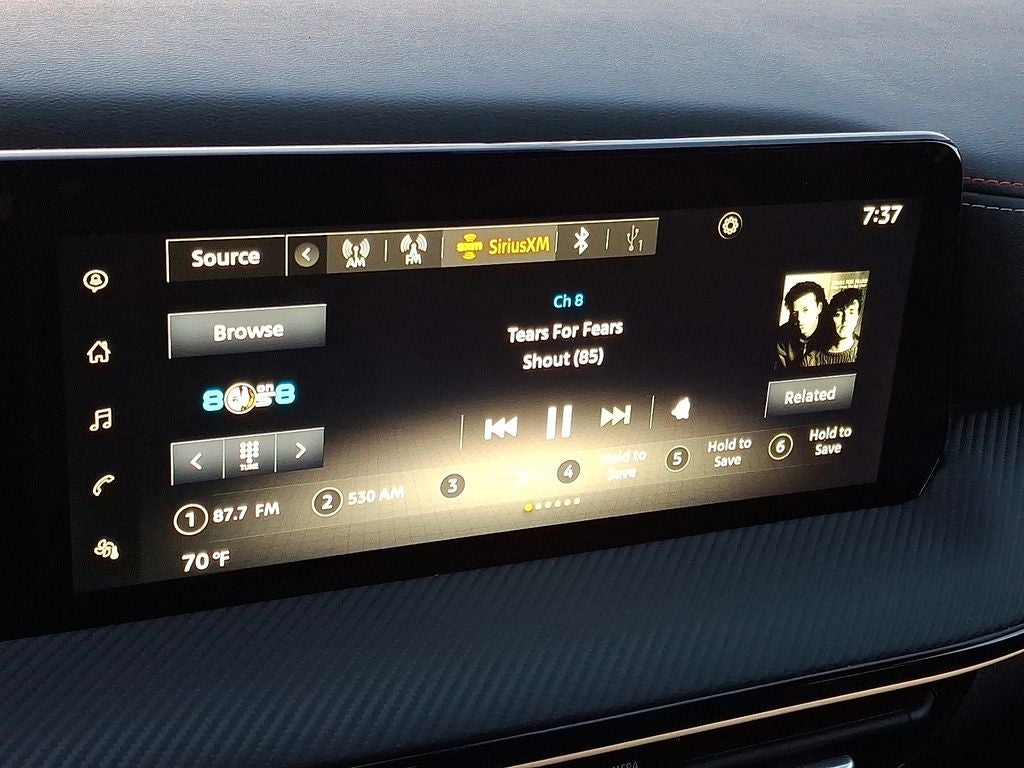 - Radio: AM/FM Audio System -inc: 12.3 color touchscreen display w/6 speakers, Bluetooth® hands-free phone system, streaming audio via Bluetooth®, audio and Bluetooth® steering wheel switches, USB C (data and charge) (front), rear USB type C port (2), NissanConnect featuring wireless Apple CarPlay, wireless Android Auto, Siri eyes free, SiriusXM satellite radio w/advanced auto features and hands-free text messaging assistant