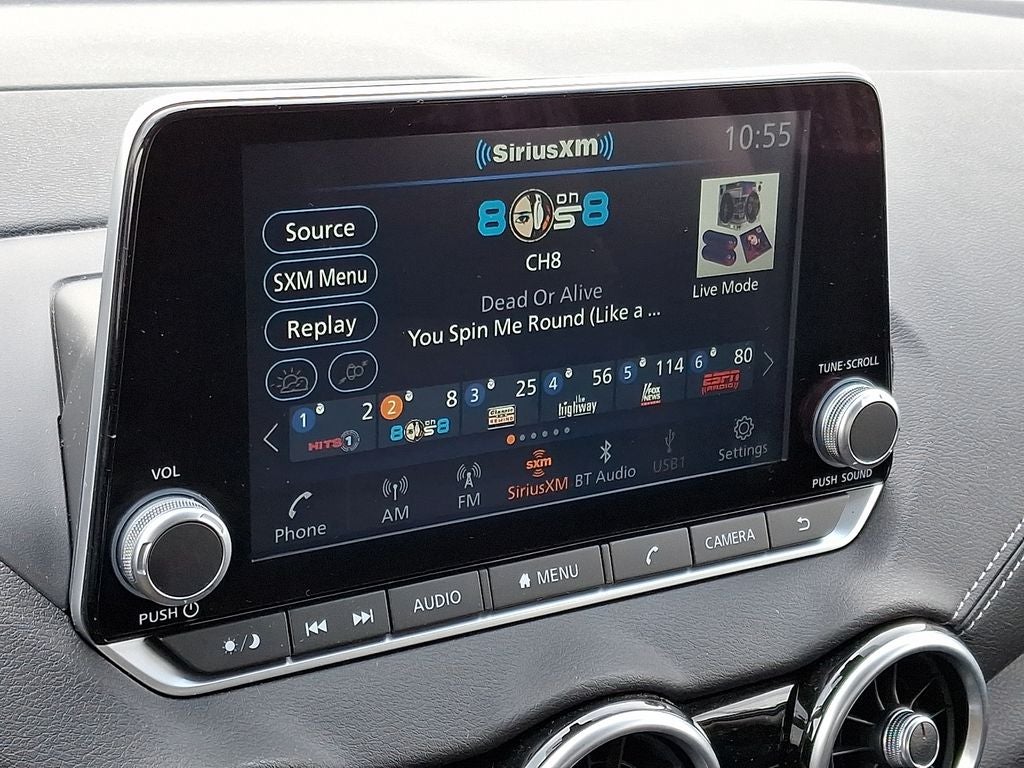 - Radio: AM/FM w/RDS/MP3/Aux-In -inc: 6 speakers plus 2 tweeters in A-pillar, 8" color display w/multi-touch control, streaming audio via Bluetooth®, Bluetooth® hands-free phone system, hands-free text messaging assistant, Siri Eyes Free, Google Assistant voice recognition w/Apple CarPlay and Android Auto, NissanConnect, (1) front USB connection port (type A), (1) additional front USB (type C), (1) charge-only USB (type A) center console and SiriusXM radio w/advanced audio features